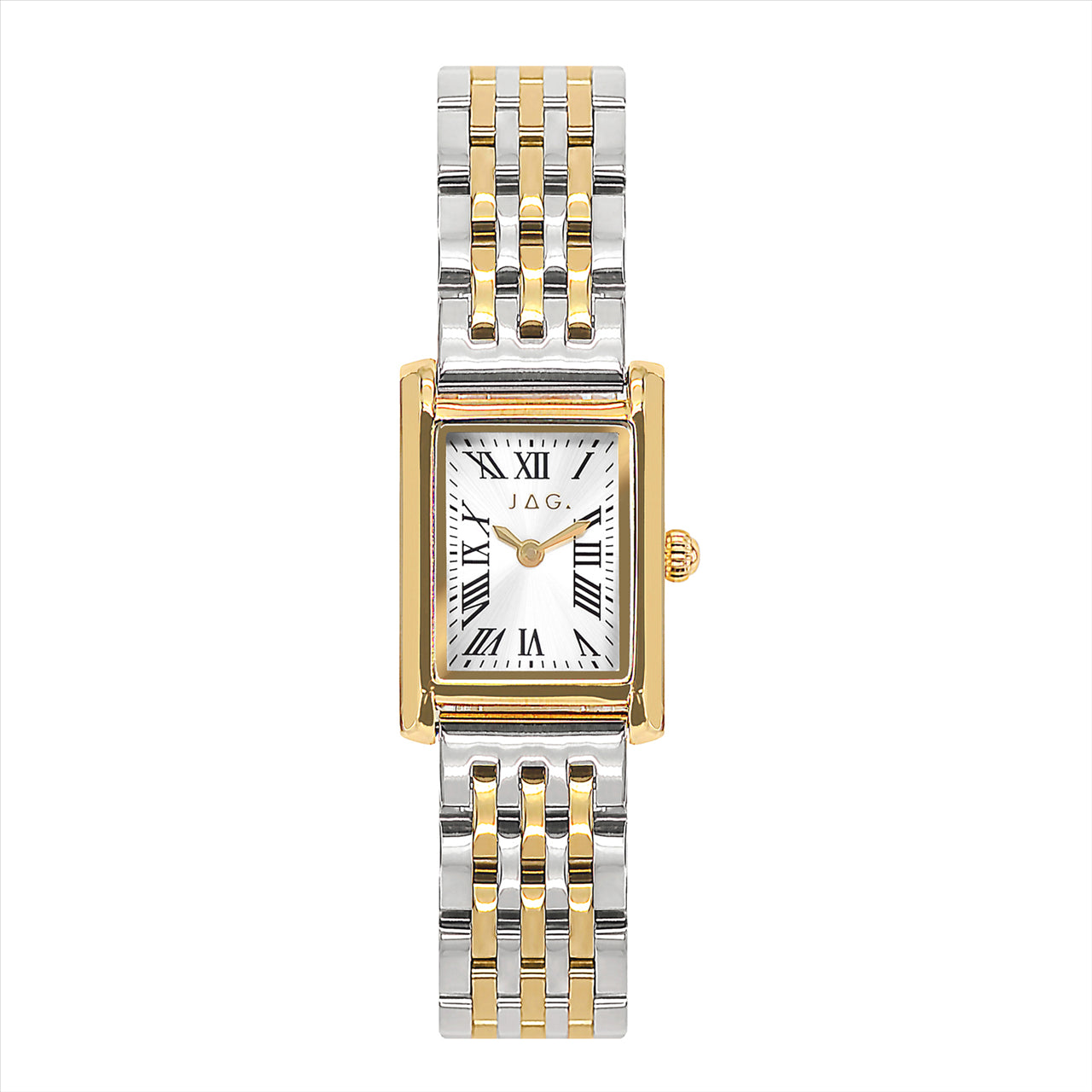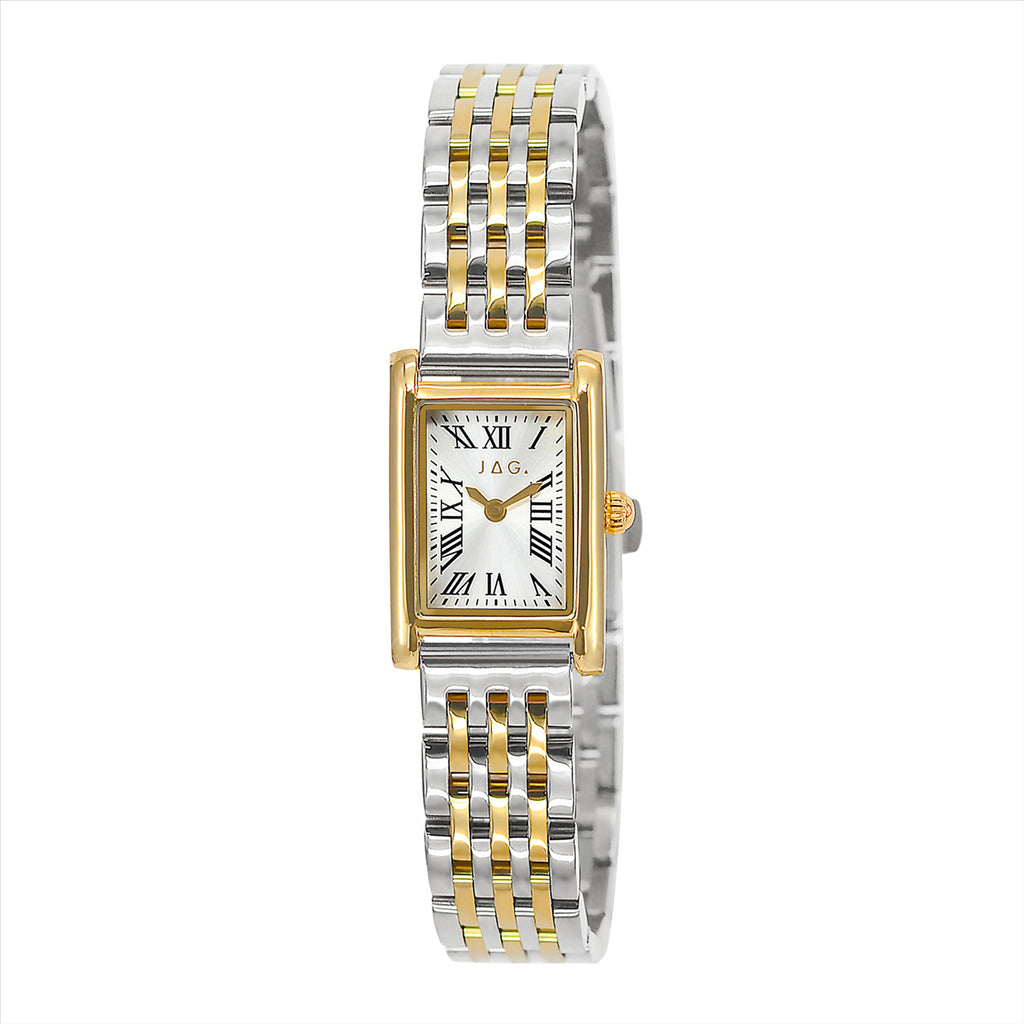 Jag Watch Cambridge J2967A - Two -Tone Stainless Steel Linked Bracelet Band White Rectangle Dial With Roman Digits