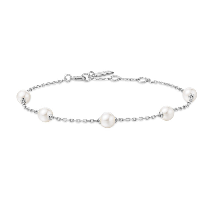 Ania Haie Silver Rhodium Plated Bracelet With 5 Pearls