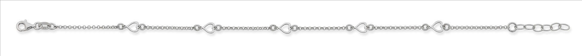 Sterling Silver Anklet Fine Belcher Link With In-Line Heart Details