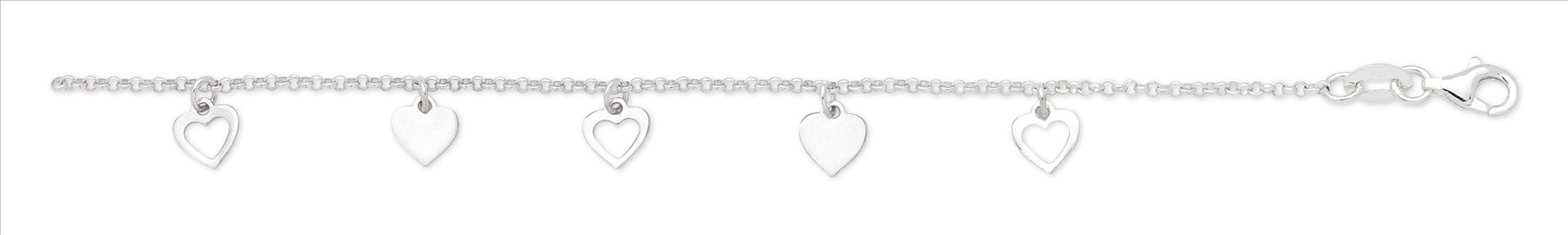 Sterling Silver Anklet With Open Heart Charms Fine Belcher Link