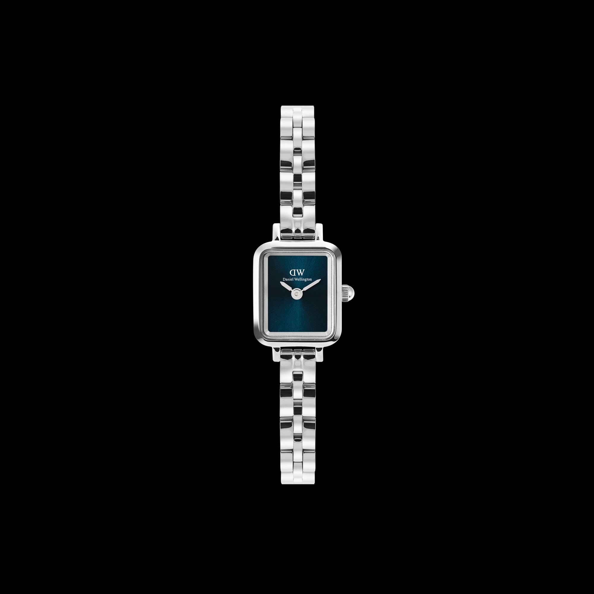 Daniel Wellington Watch Dw00100846 - Quadro Mini Arctic Sunray Silver Linked Bracelet Style Band Small Rectangle Dial Blue Face
