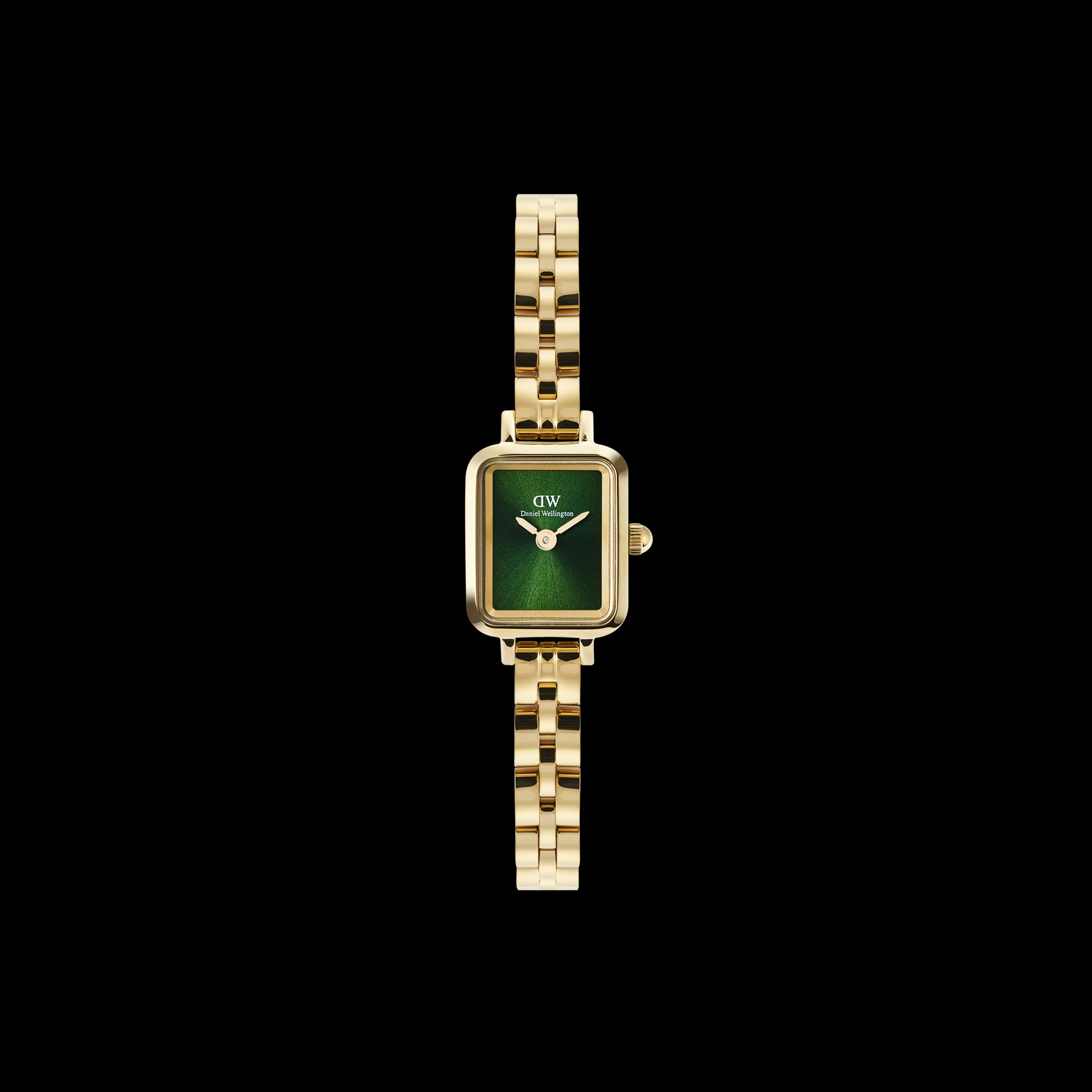Daniel Wellington Watch DW00100852 - Quadro Mini Sunray Gold Plated Bracelet Link Style Band Small Rectangle Green Dial