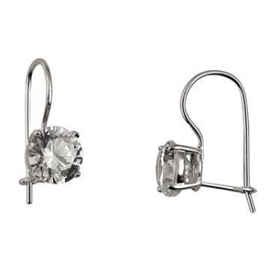 Sterling Silver CZ Drop Earrings 8Mm Clear Round Cubic Zirconia Claw Set on Fixed wire