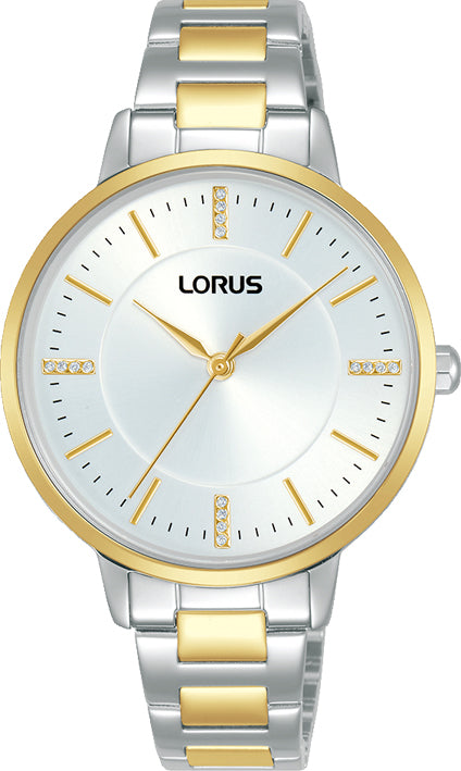 Lorus Watch - Ladies Dress 2 Tone Stainless Steel And Yellow Gold Ion Plated With White Dial 50M Water Resistant. RG250WX-9