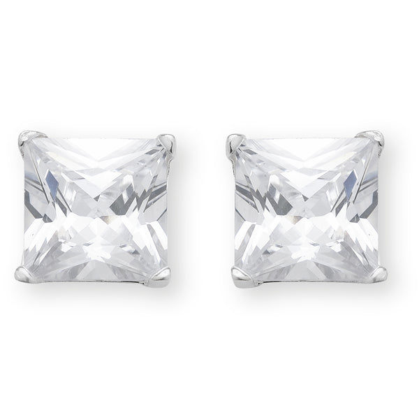 Sterling Silver Princess Cut CZ 6mm Earrings