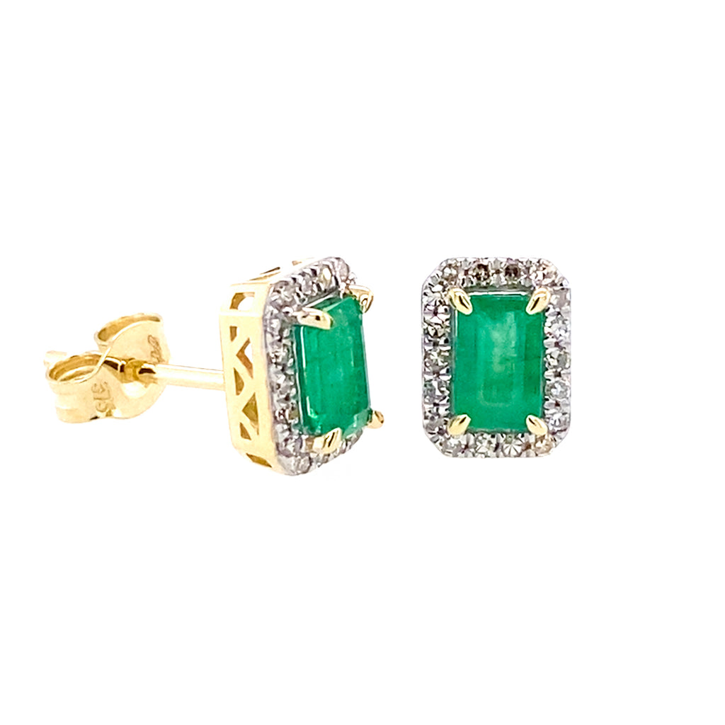 9Ct Yellow Gold Emerald & Diamond Stud Earrings