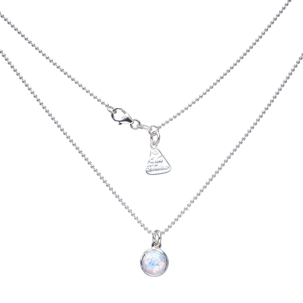Von Treskow Sterling Silver Opal Pendant 8mm Round Celline Created White Opal Bezel Set Pendant with 40cm Fine Ball Chai