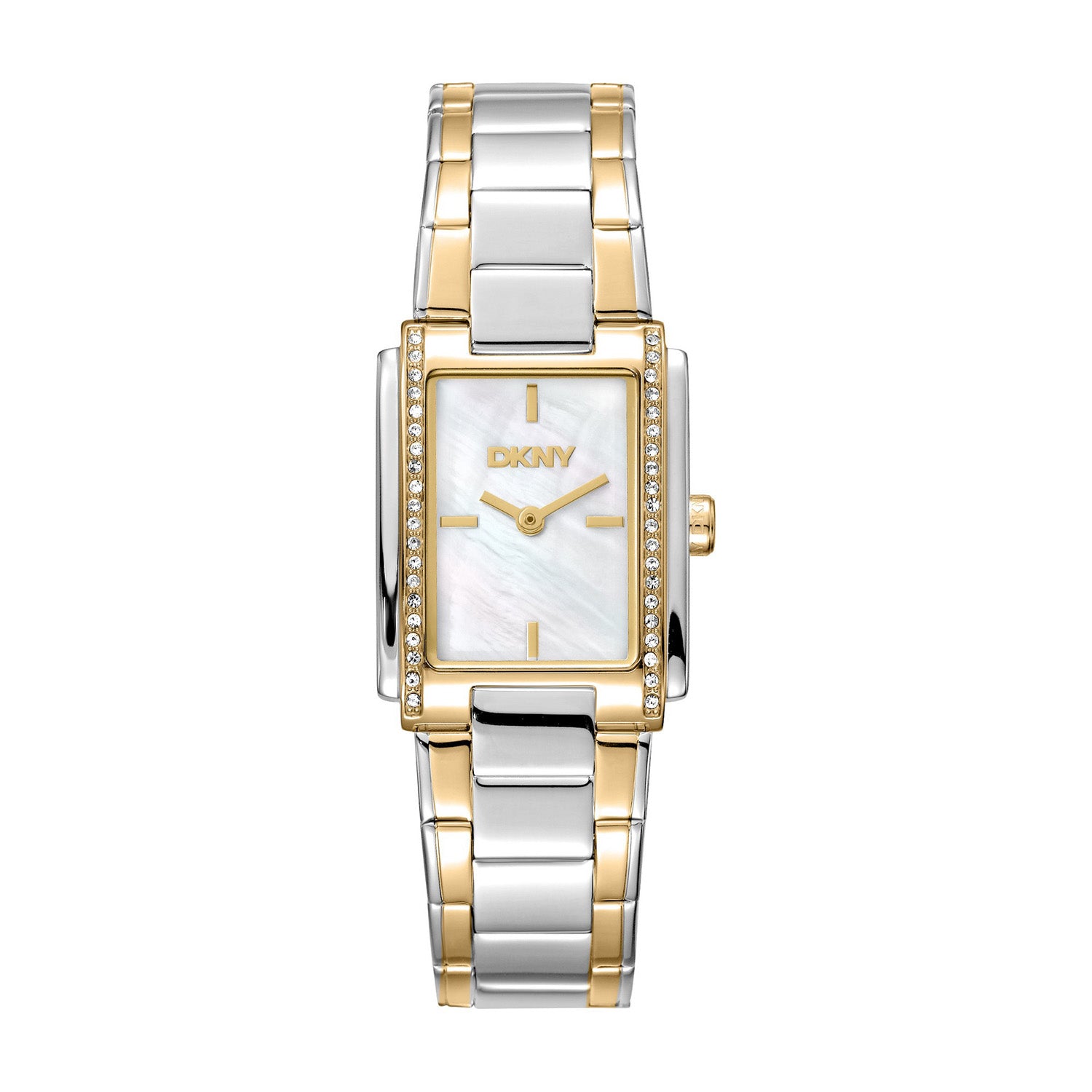 DKNY DK1L122M0075 Evening - Two Tone Stainless Steel Linked Bracelet Band Rectangle Mop Dial With Crystal Accents
